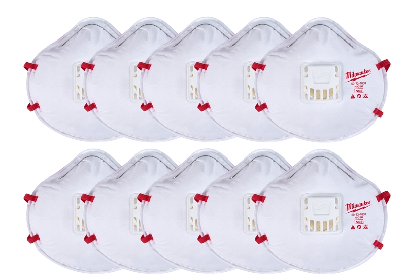 Our valved respirators with gaskets are designed to help you stay cool while providing you with a better fit. The respirator valve reduces the construction mask’s internal temperature by 10 deg F keeping you cool while at work. Milwaukee® masks feature two soft adjustable straps and a flexible nose bridge allowing you to achieve a better fit. The respirator masks are ideal for non-harmful sanding, grinding, sawing and insulation particles.