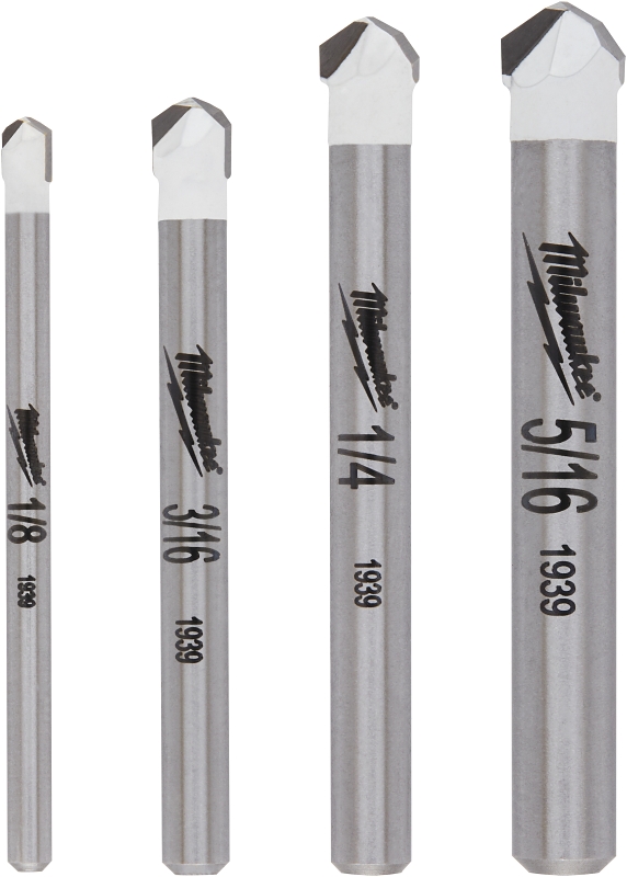 Our 4-piece tile and natural stone drill bit set delivers up to 2x life in granite, stone, ceramic tile and glass. Hammer mode capability provides faster drilling speeds when drilling natural stone tiles, like granite and marble. Equipped with an aggressive eight grind carbide head, these bits deliver up to 20% faster drilling. These bits feature reinforced tips that protect the carbide head, providing the durability needed for use in hammer drill mode. Milwaukee® tile and natural stone bits can be used in drill only mode or hammer drill mode and we don’t recommend them for porcelain tile. This kit includes (1) 1/8 in, (1) 3/16 in, (1) 1/4 in, (1) 5/16 in drill bit for natural stone.