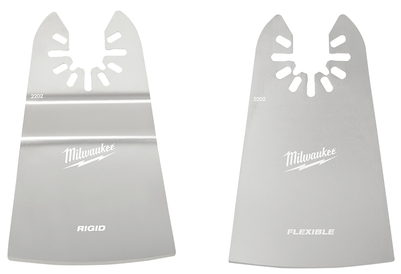 Our universal fit OPEN-LOK™ 2 in rigid and 2 in flexible scraper two-piece combo pack is for oscillating multi-tools. These Milwaukee® multi-tool scrapers have a solid stainless steel construction with a sharp ground edge, ideal for quick removal of paints, adhesives and sealants. This multi-tool blade set includes both a flexible scraper and a rigid scraper. The new shapes offer you a wider scraping width and longer shape than the previous scrapers for added versatility.