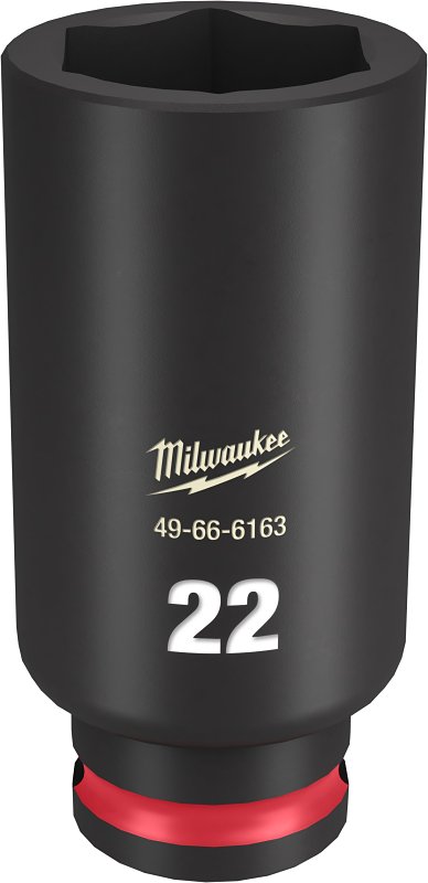 Milwaukee SHOCKWAVE Impact Duty Series 49-66-6163 Deep Impact Socket, 22 mm Socket, 3/8 in Drive, Square Drive, 6-Point