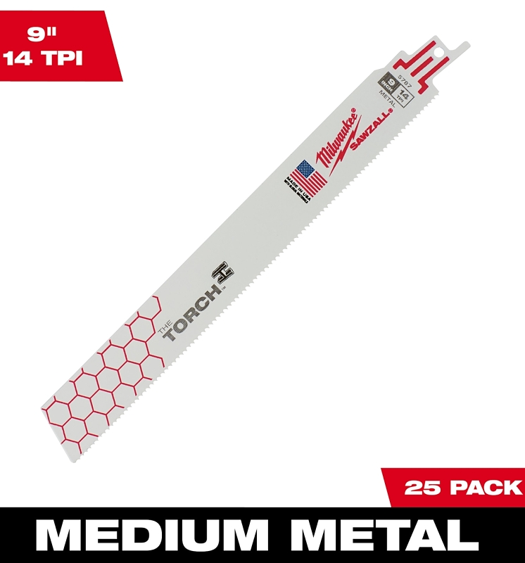 The Torch™ metal-cutting blades with the double duty Upgrade™ feature a tooth form optimized for the longest life and maximum durability. Tough Neck™ is engineered to protect against tang breakage and delivers the strongest SAWZALL® blade tang on the market. Grid Iron™ features a stamped honeycomb pattern throughout the body of the blade that greatly increases the rigidity of the blade, making it the stiffest metal cutting SAWZALL® blade on the market. These blades are ideal for making tough, straight cuts.