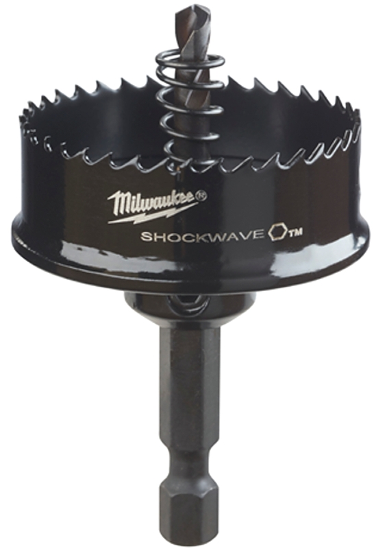 Designed with a robust 1/4 in quick-change hex shank, Milwaukee SHOCKWAVE™ Impact Duty™ thin wall hole saws give professionals a hole making solution to use with impact drivers. Utilizing a thin wall, 8 TPI design, thin wall hole saws deliver a burr-free cut up to 40% faster than standard bi-metal hole saws. The included ejection spring removes the frustration of manually removing slugs by automatically ejecting the material. A stop shoulder design prevents over drilling into material and potentially damaging inner components of electrical and junction boxes. Choose thin wall hole saws for use in plastics and thin gauge metals up to 1/8 in thick.