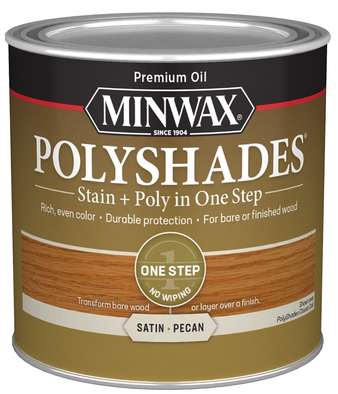 Minwax PolyShades 213204444 Wood Stain and Polyurethane, Satin, Pecan, Liquid, 0.5 pt, Can