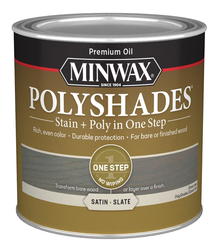 Minwax PolyShades 213984444 Interior Wood Stain, Satin, Slate, Liquid, 0.5 pt