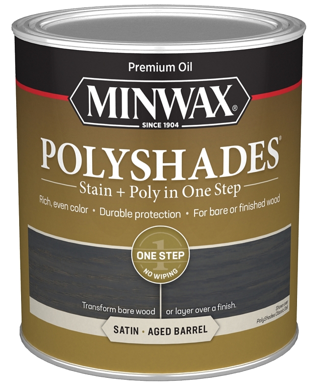 Minwax PolyShades 613994444 Interior Wood Stain, Satin, Aged Barrel, Liquid, 1 qt