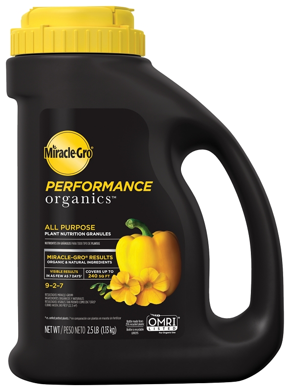 Astonishing results, every time – that has always been the Miracle-Gro mission. Miracle-Gro® Performance Organics® all-purpose plant nutrition granules delivers the Miracle-Gro® results you expect with the ingredients you want. That means more bounty – vegetables, flowers and herbs – organically (vs unfed plants). In as few as 7 days, you’ll start to see results (vs unfed potted plants). The shaker bottle makes feeding your plants easy.