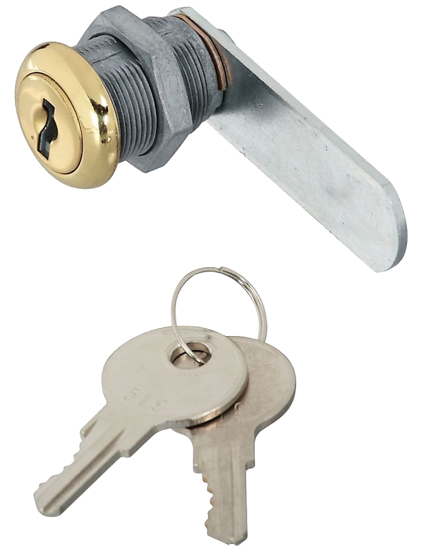 National Hardware V825 Utility Lock, Cross Bore Size: 1/2 in, Lock Type: Keyed, Key Type: Keyed Different, Number of Keys: 2, Steel/Zinc, Brass, Dimensions: 2.33 in L x 0.62 in W x 1.15 in D, Includes: (2) Keys