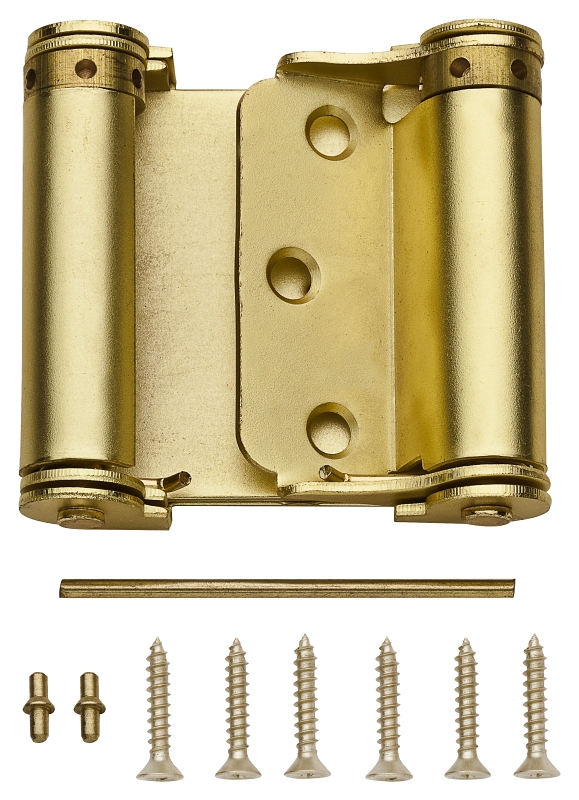 National Hardware Spring Hinge, 12 lb Weight, Surface Mounting, Steel, Satin Brass, Dimensions: 3 in W, Suitable for: 3/4 to 1-3/8 in Thick Swinging Doors, Includes: Screws