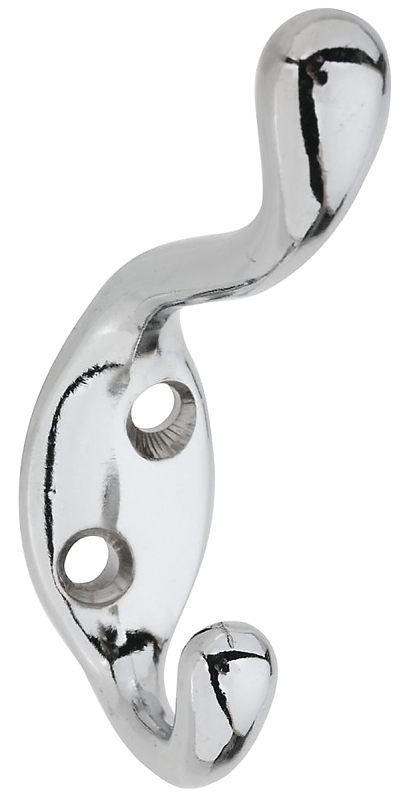 National Hardware V166 N273-516 Coat and Hat Hook, 75 lb, 2-Hook, Zinc, Chrome