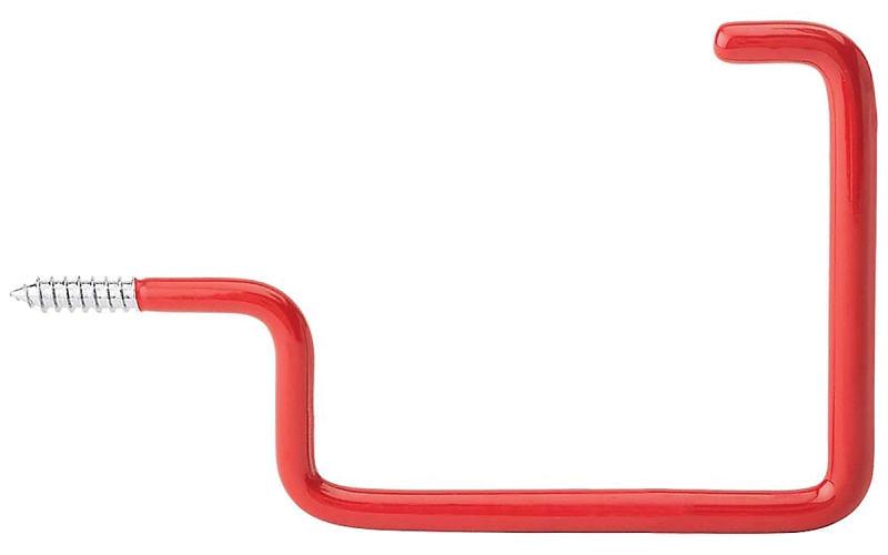 Designed to hang ladders, bicycles and tools. Red vinyl-coated. Safe working load of 25 lb. Visual-pack.
