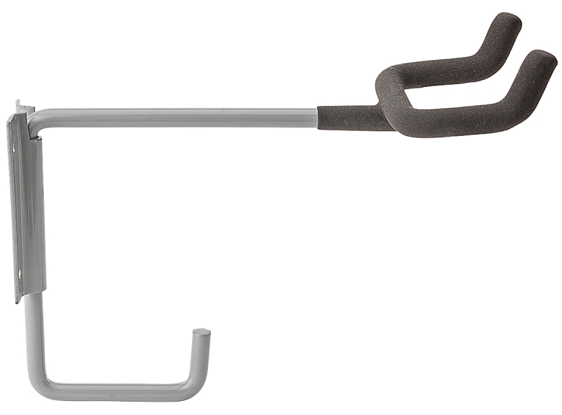Designed to hold power tools and equipment in a garage or other storage area. Mounting hardware included. Safe working load of 50 lb. Black vinyl-coated. Boxed loose.