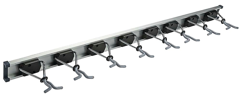 Designed to store multiple items such as brooms, mops and other handled tools. Can be used in the laundry room, garage and bathrooms. Grips use gravity to store items and can slide to hold various items. Safe working load of 20 lb. Vinyl-coated hooks. Visual-pack.