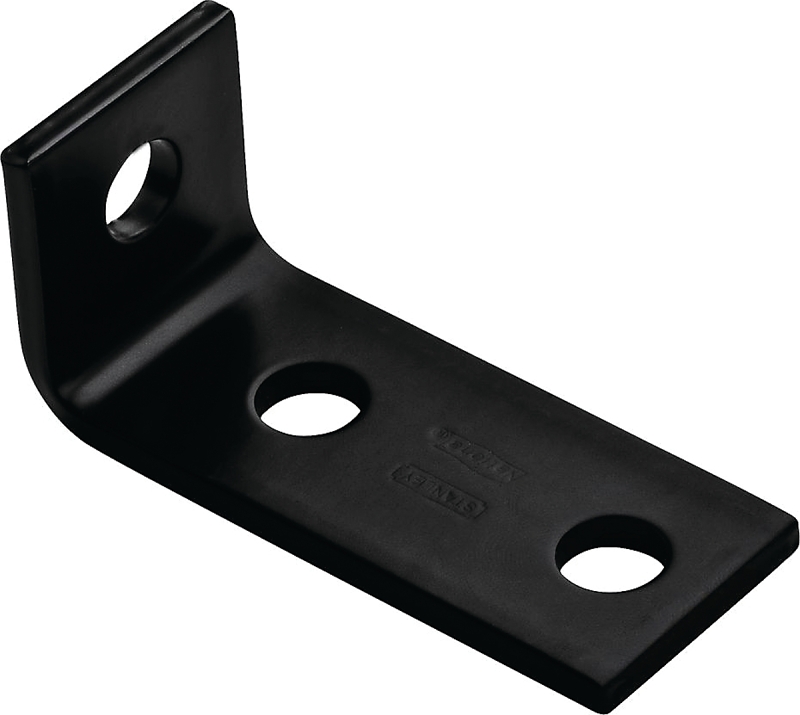 Used to reinforce a 90 deg angle through application on the inside. 1/2 in Dia holes. Extra length on one leg gives extra reach to provide greater stability. Black powder coat finish for improved weather resistance.