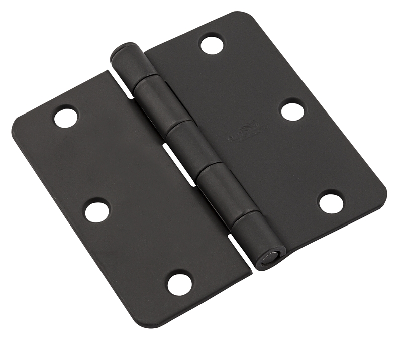 National Hardware V512RC Door Hinge, 50 lb Weight, Number of Knuckles: 5, Pin Type: Removable, Mortise Mounting, Number of Mounting Holes: 6, Corner Radius: 1/4 in, Steel, Black, Dimensions: 3-1/2 in W, Includes: Screws