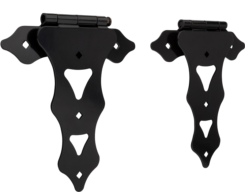 National Hardware Ornamental T-Hinge, Frame Leaf Height: 9-3/8 in, Frame Leaf Width: 10 in, Frame Leaf Thickness: 1/8 in, Screw Mounting, Steel, Black, Includes: (12) 5/16 x 2 in Hex Head Lag Screws