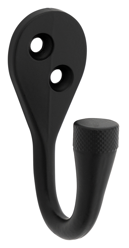 National Hardware Powell Knurled Hook, 15 lb Weight, Aluminum, Matte, Black, Screw, Surface, Wall Mounting, Projection Size: 1-1/2 in, Dimensions: 1-1/2 in L x 1 in W x 2-5/8 in H, Includes: (2) #8AB x 1-1/2 in Flat Head Screws, (2) #8 Plastic Anchors and Mounting Hardware