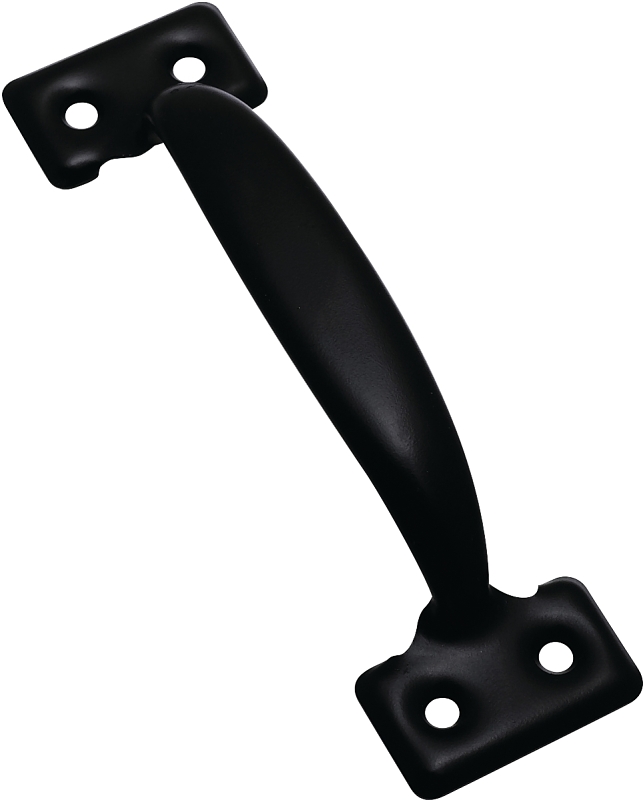National Hardware Door Pull, Projection Size: 1-3/8 in, Plate Size: 1/8 in, 1-1/2 in W, 1-3/8 in D, 5-3/4 in H, Black, Steel, Fastener Type: Screw, Includes: (4) #8 x 3/4 in Flat Head Wood Screws