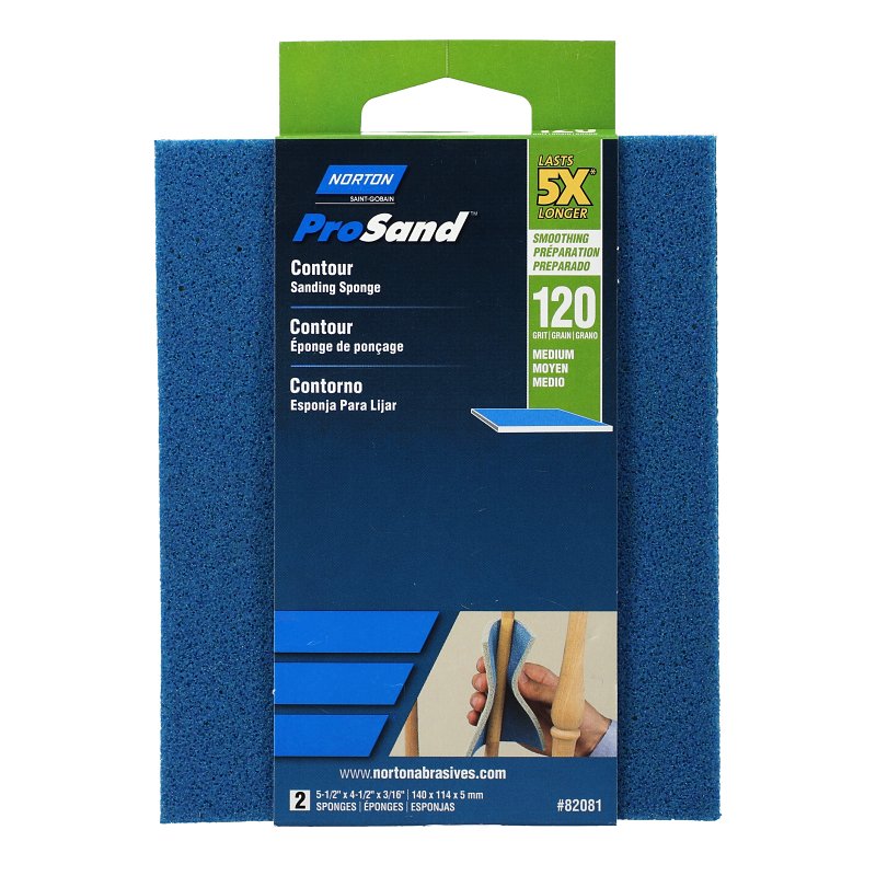 Norton ProSand 82081 Sanding Sponge, 5-1/2 in L, 4-1/2 in W, 120 Grit, Medium, Aluminum Oxide Abrasive