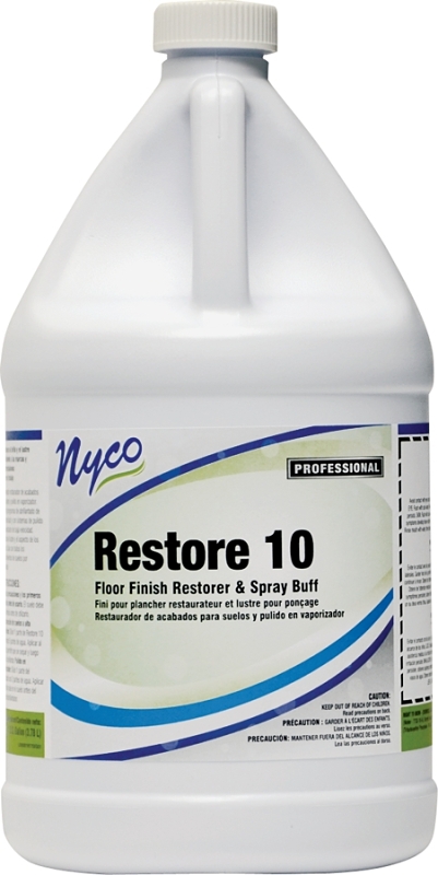 Restore 10 is a dual-purpose floor enhancer and buffing compound which restores the gloss and appearance to any floor. Use as a mop on floor restorer for high speed and propane burnishing programs and also as a spray buffing compound for high and low speed buffing. Can be used on any floor and will increase gloss, appearance and durability. Highly mark-resistant, it will harden, restore and reinvigorate finishes that are worn from repeated buffing and burnishing. Use of restore 10 creates a more even level of appearance and extend the life cycle of any finish, lowering the overall cost of floor maintenance.