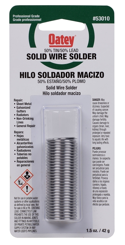 Oatey® wire solder is a tin-lead alloy wire solder commonly used for tin plating, seaming joints, copper DWV systems and sheet metal repair.