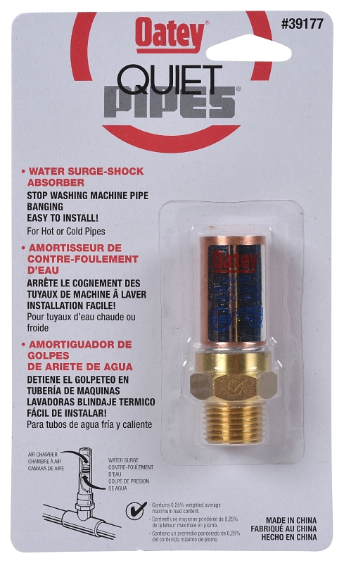 Oatey® Quiet Pipes water hammer absorbers are designed to reduce water pipe banging noise caused by quick-closing valves. It protects plumbing appliances and fixtures from the effects of water hammer.