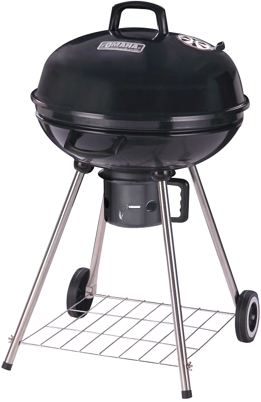 Omaha DFKP22443L Charcoal Kettle Grill, 2-Grate, 397 sq-in Primary Cooking Surface, Black, Steel Body