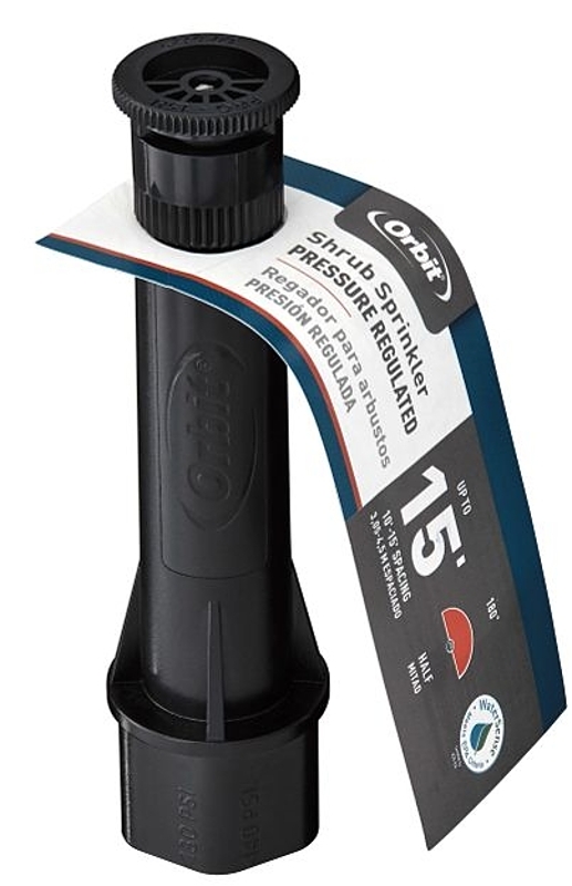 Orbit Shrub Head Sprinkler, 1/2 in Connection, Female Connection, Full-Circle/Part-Circle: Part-Circle, Operating Range: 1 to 10 ft, 1.23 gpm, 80 psi, Plastic, Black