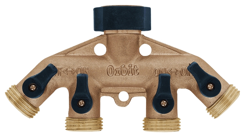 Orbit 62010N Hose Faucet Manifold, 3/4 in Swivel x MHT, 4-Port/Way, Brass