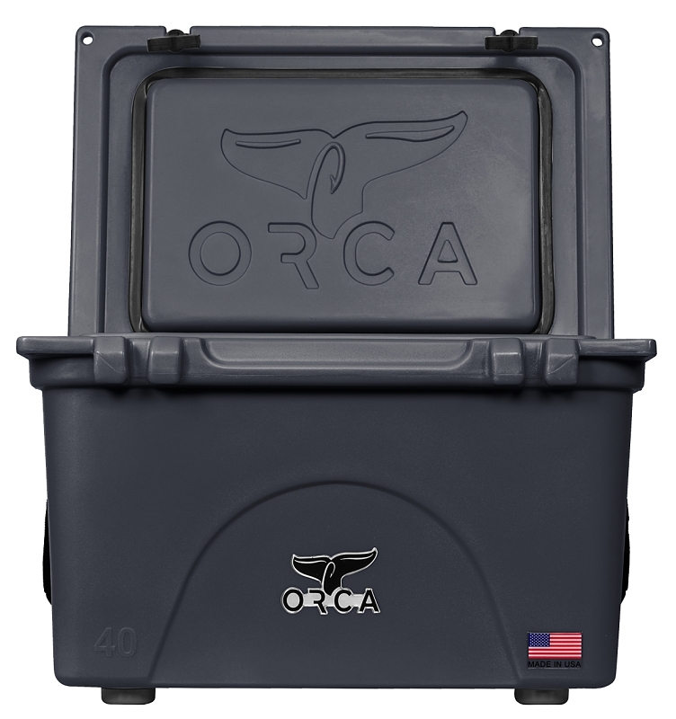 Orca Cooler, Cooler Capacity: 40 qt, Maximum Load Capacity: 48 Cans, Dry Weight: 30 lb, Ice Retention Time: 10 days, Charcoal, Extendable Flex-Grip Handle, Exterior Dimensions: 17-5/8 in H x 26-1/4 in W x 18-1/8 in D, Interior Dimensions: 18-15/16 in L x 11-7/8 in W x 11-7/16 in H