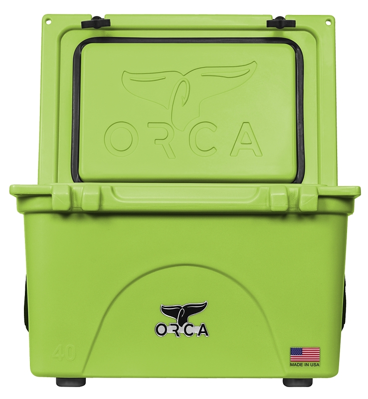 Orca Cooler, Cooler Capacity: 40 qt, Maximum Load Capacity: 48 Cans, Dry Weight: 30 lb, Ice Retention Time: 10 days, Lime, Extendable Flex-Grip Handle, Exterior Dimensions: 17-5/8 in H x 26-1/4 in W x 18-1/8 in D, Interior Dimensions: 18-15/16 in L x 11-7/8 in W x 11-7/16 in H