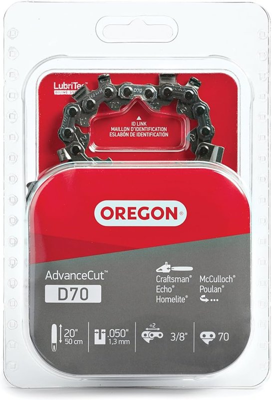 The D70 AdvanceCut™ 20 in saw chain is a low kickback chain that is ideal for occasional and commercial chainsaw users. The low-vibration full chisel cutters offer top performance while also providing a smooth cutting experience via our patented bent over depth gauge.