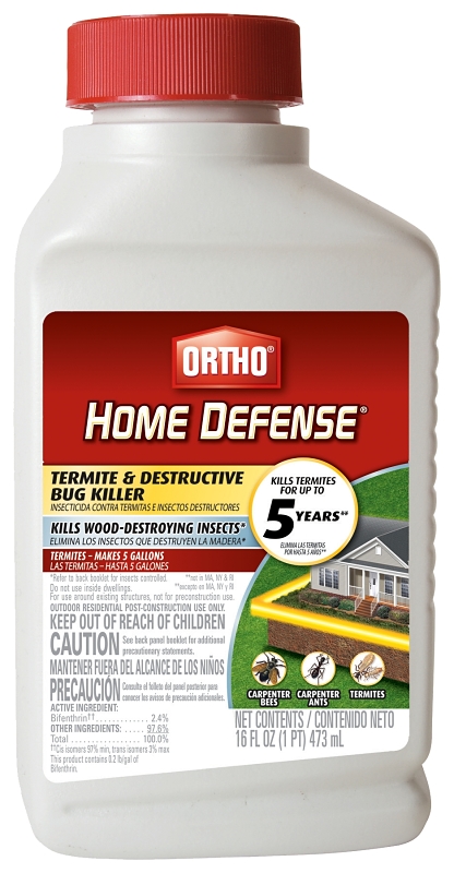 Termites can be one of the most expensive pest issues to handle. Use around your home’s perimeter or wooden surfaces to kill and protect from termites and other wood-destroying insects (see label for complete list). Give yourself peace of mind with Ortho® Home Defense Termite & Destructive Bug Killer.