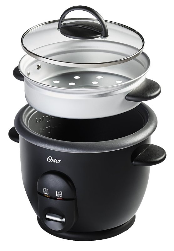 This six-cup electric rice cooker features Oster® DiamondForce™ non-stick coating, Oster’s longest-lasting non-stick yet. DiamondForce Non-stick is infused with diamond particles that form a structural matrix, creating a stronger coating to provide easy food release and excellent non-stick performance over time. This electric rice cooker has a large capacity that’s ideal for family meals and meal prep. It includes a steaming tray, so you can cook rice and steam veggies or fish simultaneously for a full meal, plus a measuring cup and ladle. The dishwasher safe inner pot and tempered glass lid with a steam vent add even more convenience. And the PFOA-free, scratch-resistant non-stick surface means hassle-free clean-up.