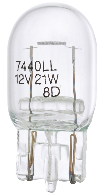 Peak 7440LL-BPP Miniature Automotive Bulb, 13.5 V, 25 W, Incandescent Lamp, Wedge, Clear