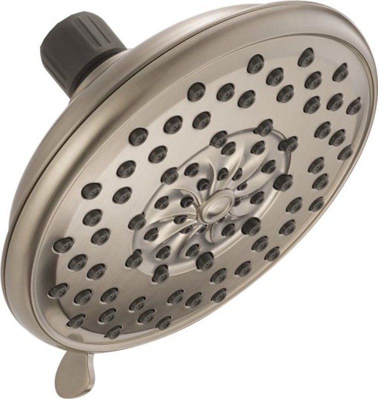 Peerless Shower Head, Round, 1.75 gpm, 1/2 in Connection, IPS Connection, Number of Spray Functions: 3, Spray Pattern: Dial, Spray Settings: Full Body, Massage, Pause, Plastic, Brushed Nickel, 5-15/16 in W