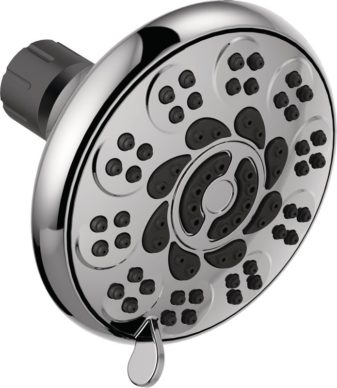 Peerless Shower Head, 1.75 gpm Flow Rate, 1/2 in Connection, 6 Spray Functions, Spray Settings: Full Body Spray, Full Spray With Massage, Massaging Spray, Shampoo Rinsing Spray, Soft Drench with Full Spray, Plastic, Chrome, 4 in Diameter, 3-11/16 in Length