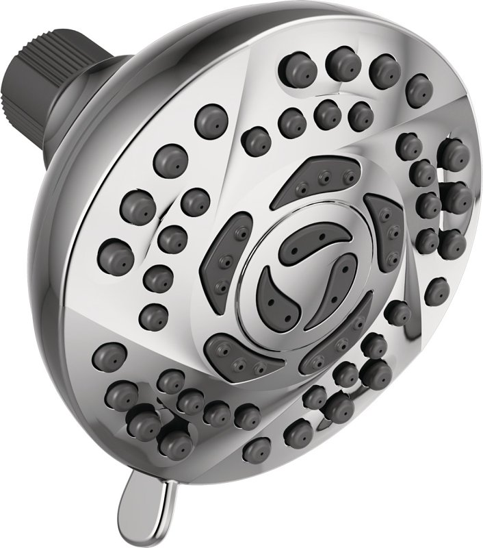Peerless Shower Head, 1.75 gpm, 1/2 in Connection, IPS Connection, Number of Spray Functions: 8, Spray Pattern: Dial, Full, Spray Settings: Full Body Spray, Full Spray with Massage, Massaging Spray, Pause, Shampoo Rinsing Spray, Shampoo Rinsing Spray with Massage, Slow Massage Spray, Soft Drench with Full Spray, ABS, Chrome-Plated, 4-1/4 in Dia, 4-1/16 in H