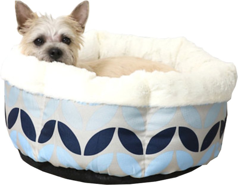 Petmate Pet Bed, Round Shape, Soft Plush Cover, Filling Material: Poly, Blue Denim, Petal Print Pattern, 18 in Length, 18 in Width, Resists: Skid