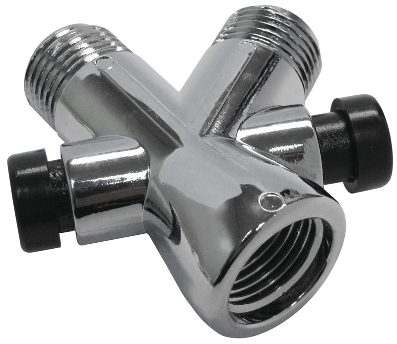 Shower arm diverter, plastic, connects personal shower and shower head. 1/2 in FIP. x 1/2 in MIP. x 1/2 in MIP.