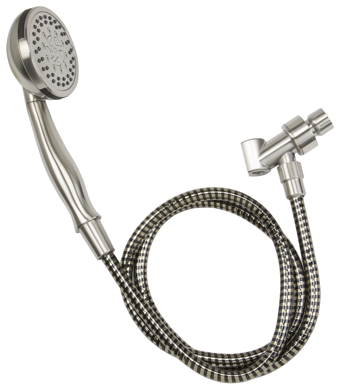 Plumb Pak Handheld Shower, 1.8 gpm, Number of Spray Functions: 5, Hose Length: 60 in, Head Diameter: 3.86 in, Brushed Nickel, Includes: (1) Flexible Hose, (1) Diverter Bracket, (1) Handheld Showerhead