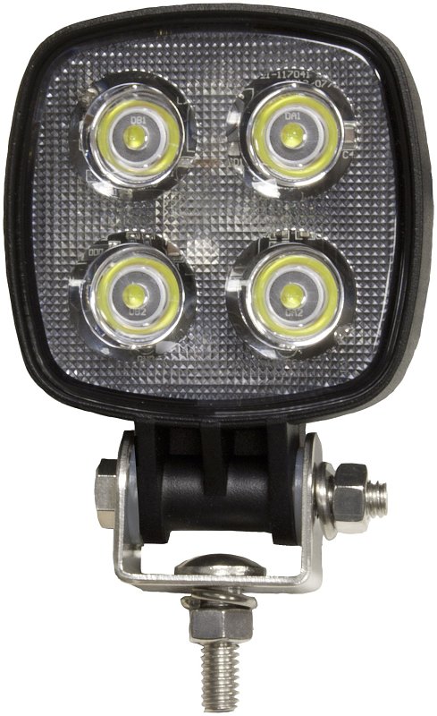 PM Compact Work Light, 12/24 V, 0.65/1.3 A, Lamp Type: LED, Number of Lamps: 4, Lens Type: Polycarbonate, Lumens: 900 Lumens, Color Temperature: 6500 K, IP Rating: IP67, Temperature Rating: -40 to 65 deg C, Aluminum, Black, Dimensions: 4.37 in L x 3.15 in W x 2.36 in H