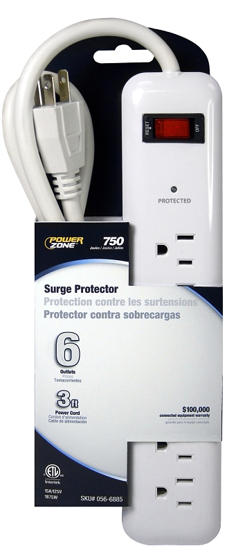 PowerZone Multimedia Surge Protector has 6-outlets to power everything on your desk or home entertainment system. It also has a 3 ft power cord and 750 Joules of surge protection.