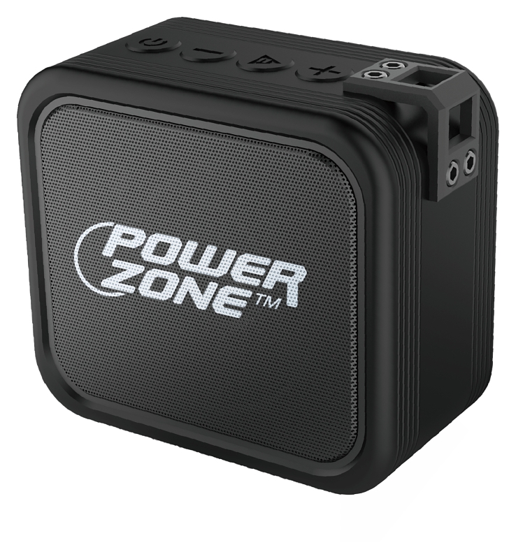 Portable wireless speaker. Made of silicone + metal mesh material. Supports MP3. Compatible with Micro SD card/wireless/microphone/TWS stereo. 1200mAh battery. 59 ft (18m) transmit distance. 5W speaker. DC 5V charging power/rechargeable by USB, and no external batteries required. IPX6 Water resistant. Black color.