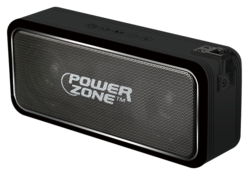Portable wireless speaker. Made of silicone + metal mesh material. Supports MP3. Compatible with USB/AUX/wireless/microphone/TWS stereo. 3000mAh battery. 32.8 ft (10m) transmit distance. 10W x 2 speakers. DC 5V charging power/rechargeable by USB, and no external batteries required. IPX6 Water resistant. Black color.