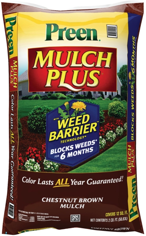 Preen 52050661 Mulch Plus Weed Barrier, Granular, Chestnut Brown