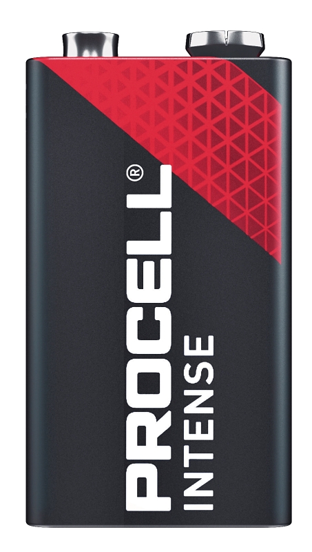 Procell alkaline Intense power 9 V industrial batteries are recommended for use in high-drain professional device.