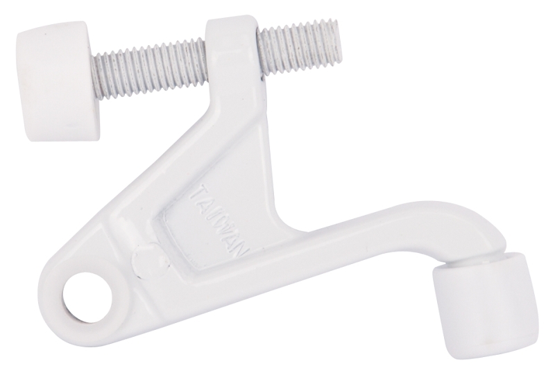 This hinge pin door stop with a plastic tip is ideal for protecting door and wall. Comes with an adjustable screw.