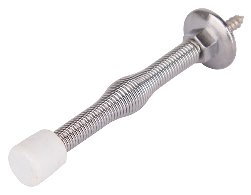 The chrome solid doorstop is a simple way to help prevent any damage to walls and objects behind the door. The doorstop features solid material and a long projection.