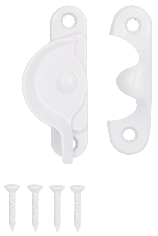 The ProSource sash cam lock is made of steel with a white powder coated finish. Screws included.