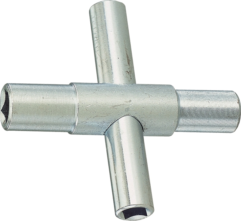This 4-way steel silcock key wrench has a 1/4 in., 9/32 in., 5/16 in. and 11/32 in. stem to service most silcocks in common use. It is durable, easy to use and has an attractive finish. Used to open and close silcocks or spigots. Used in place of silcock handles.